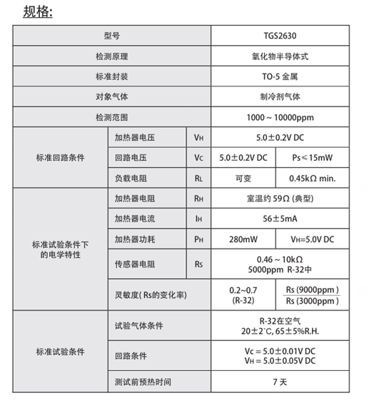 在這里,深圳市新世聯科技有限公司給大家推薦款半導體式傳感器TGS2630,能檢測到多種氟利昂泄露,以下是TGS2630基本參數。