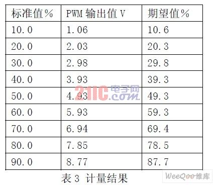 完成開發(fā)調(diào)試工作后,對(duì)產(chǎn)品進(jìn)行了長(zhǎng)時(shí)間的穩(wěn)定性測(cè)試,對(duì)存在的問題進(jìn)行了改進(jìn)。為了該變送器能更好地應(yīng)用在實(shí)際項(xiàng)目中,還將其送到賽寶計(jì)量檢測(cè)中心進(jìn)行計(jì)量。結(jié)果如表3 所示。、